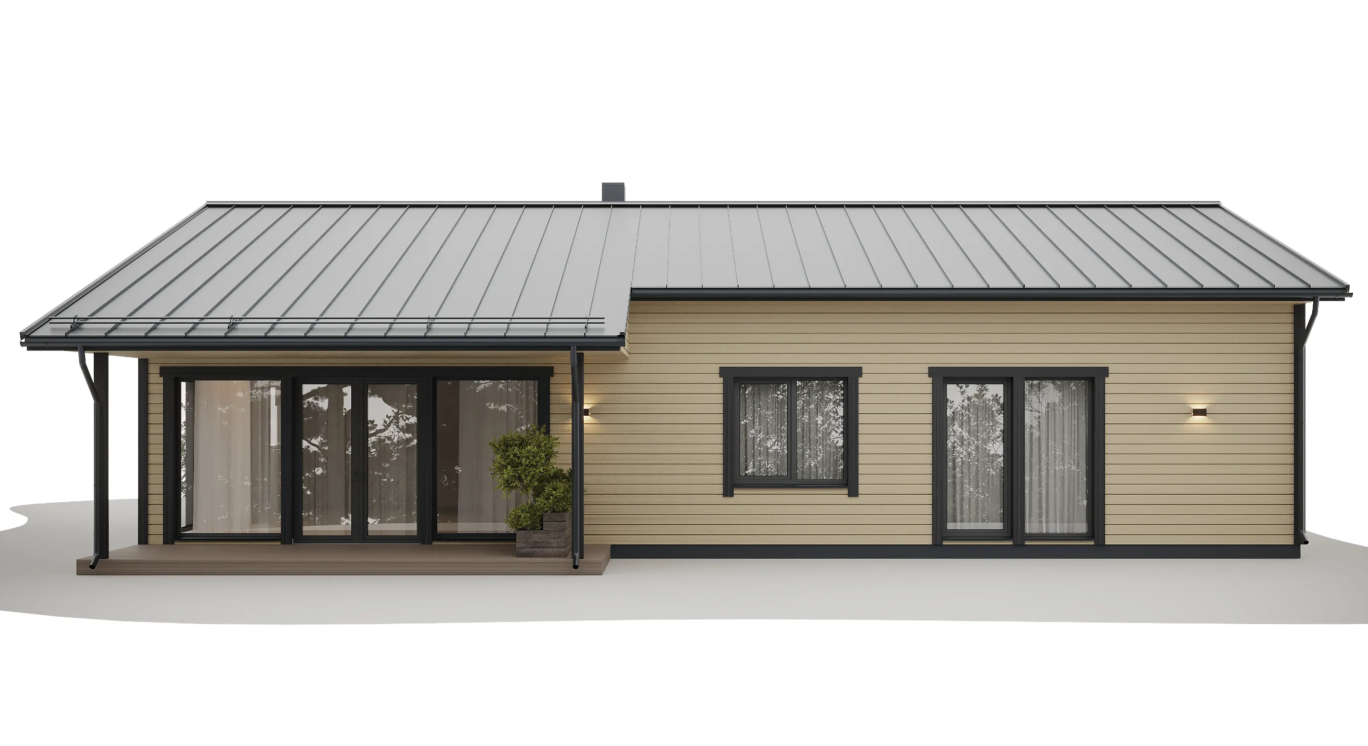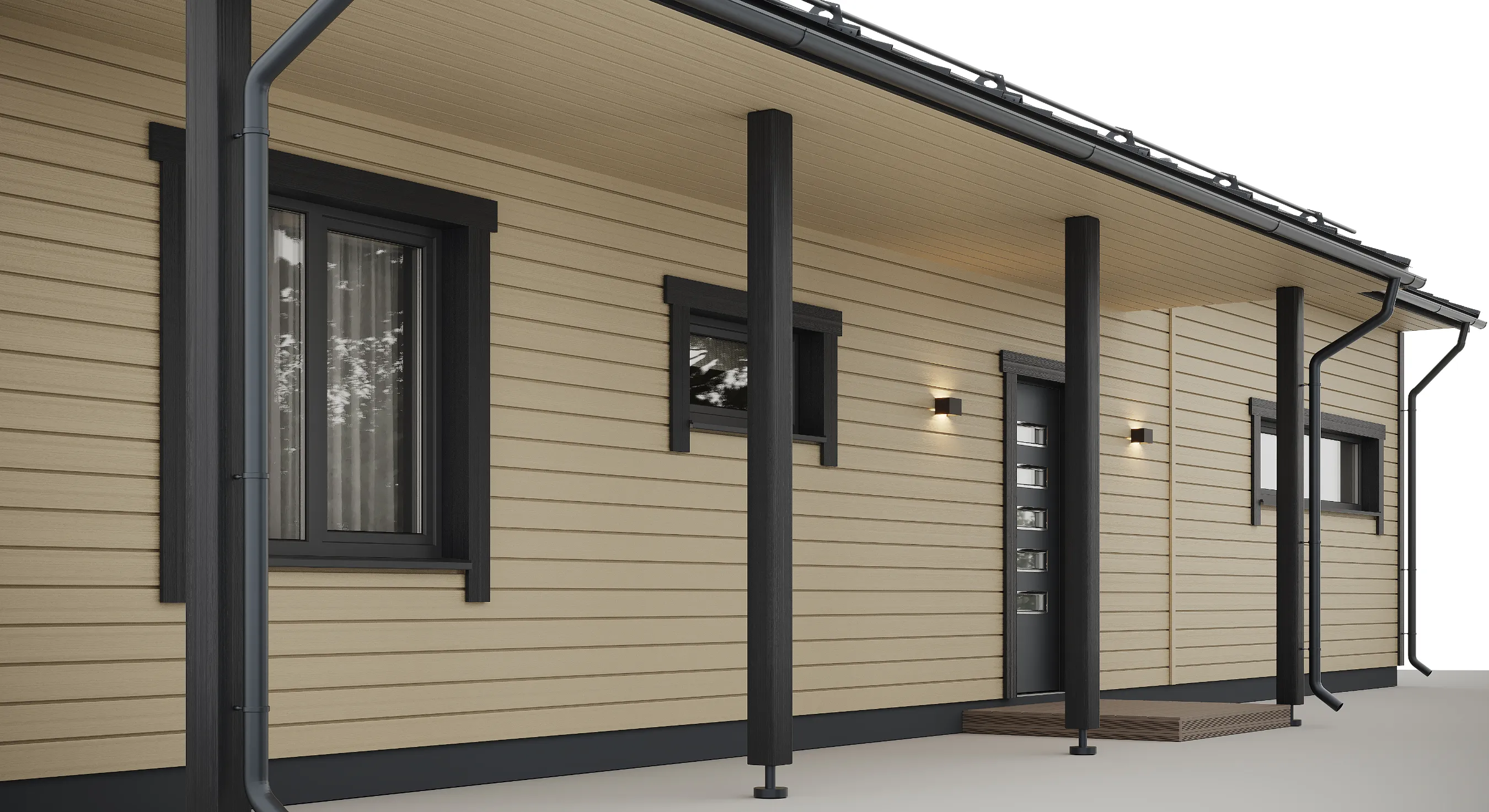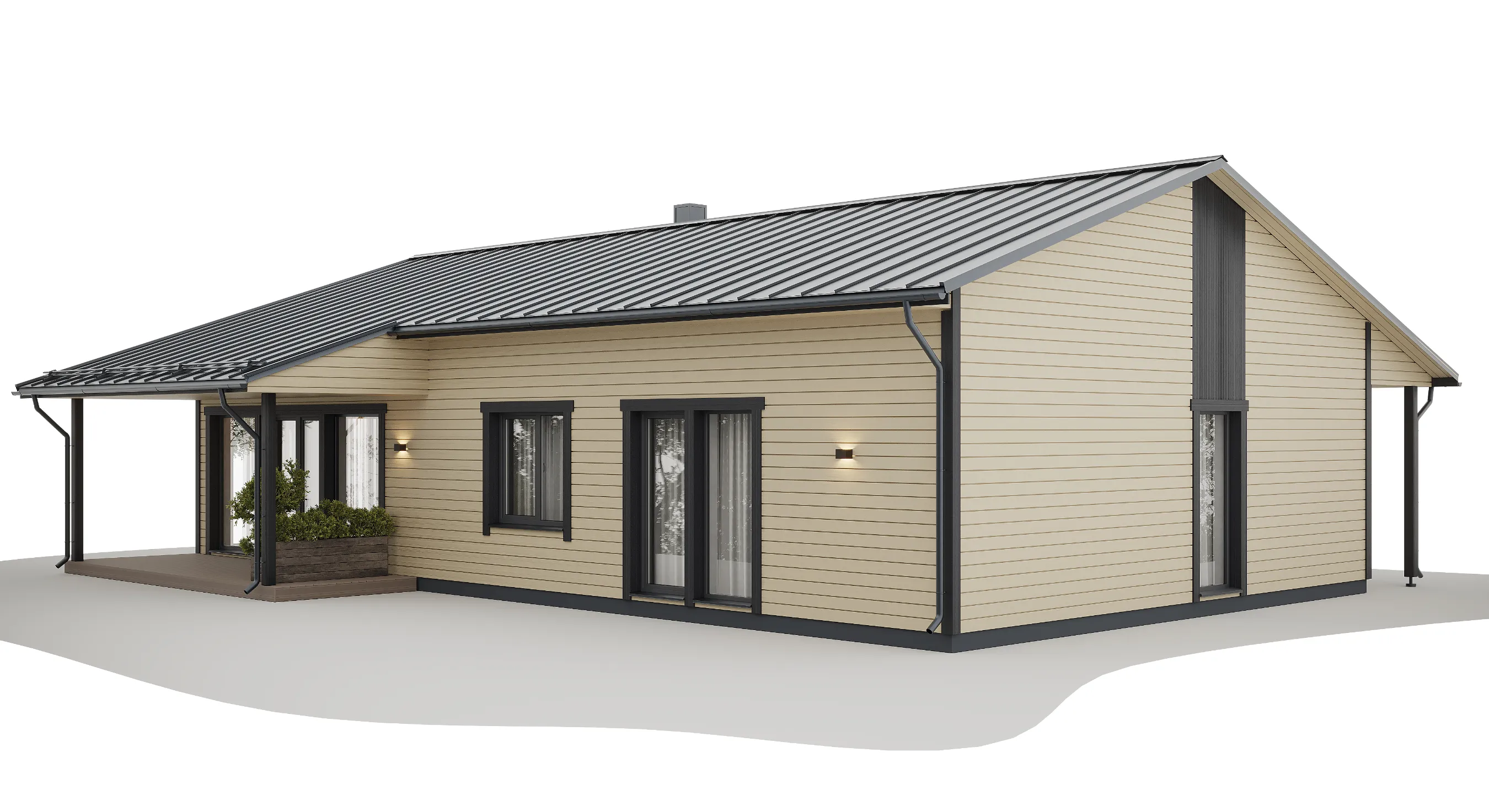 Koka karkasa konstrukcija nozīmē precīzu rūpnīcas sagatavošanu un raitu montāžu objektā, kas palīdz ievērot termiņus un kvalitāti. Papildu ārtelpas zonu var ērti izmantot kā vasaras ēdamistabu vai bērnu rotaļu laukumu, savukārt lielie logi un paaugstinātie griesti nodrošina patīkamu mikroklimatu un mājokļa “plašuma sajūtu”.