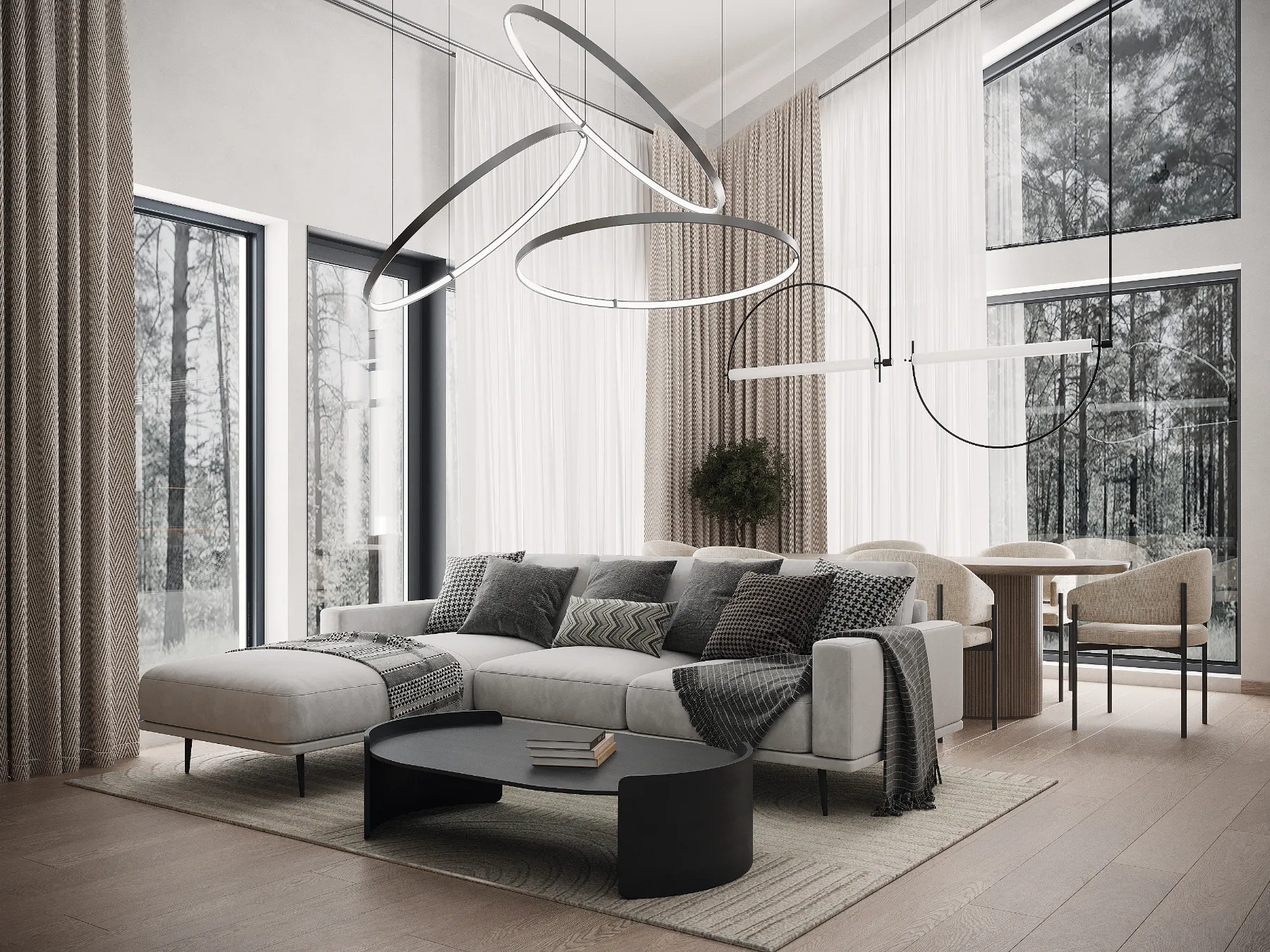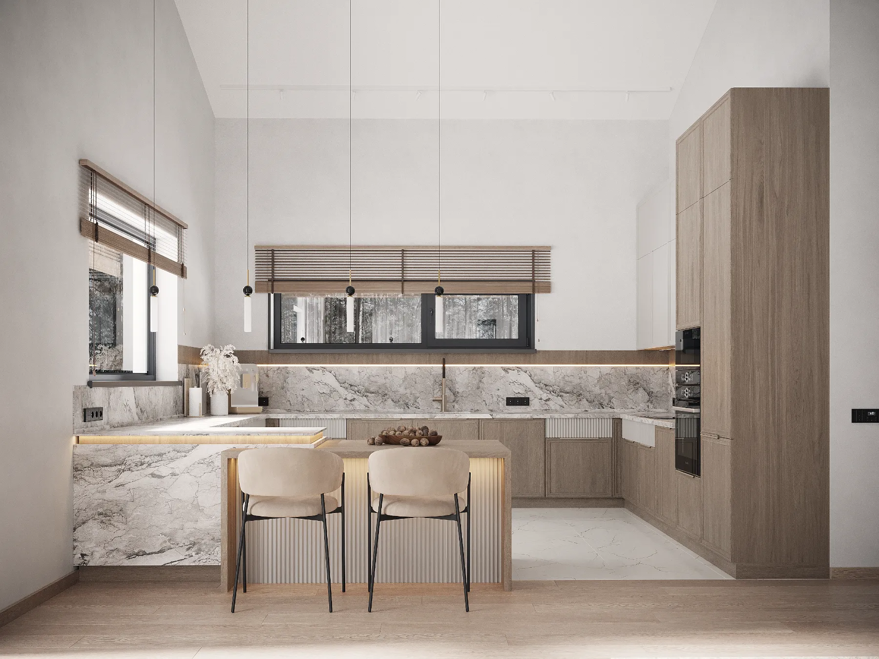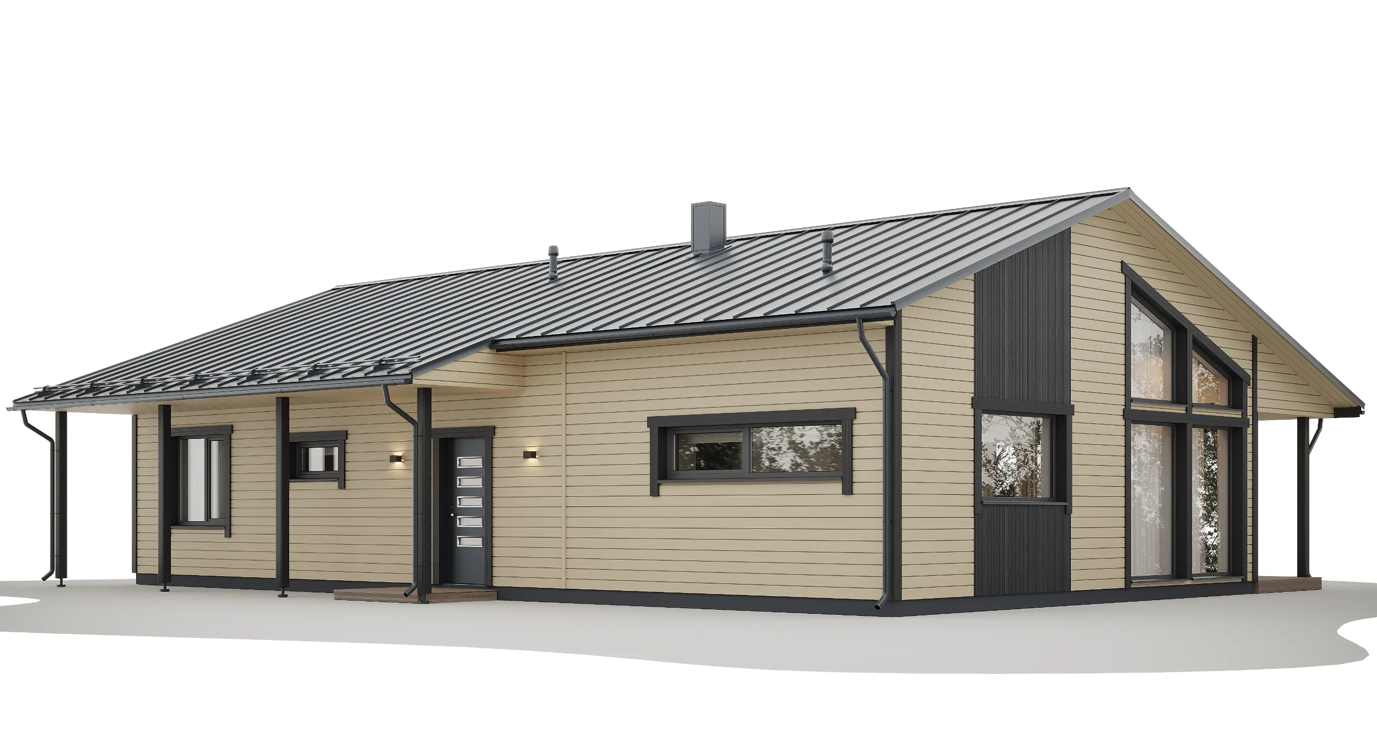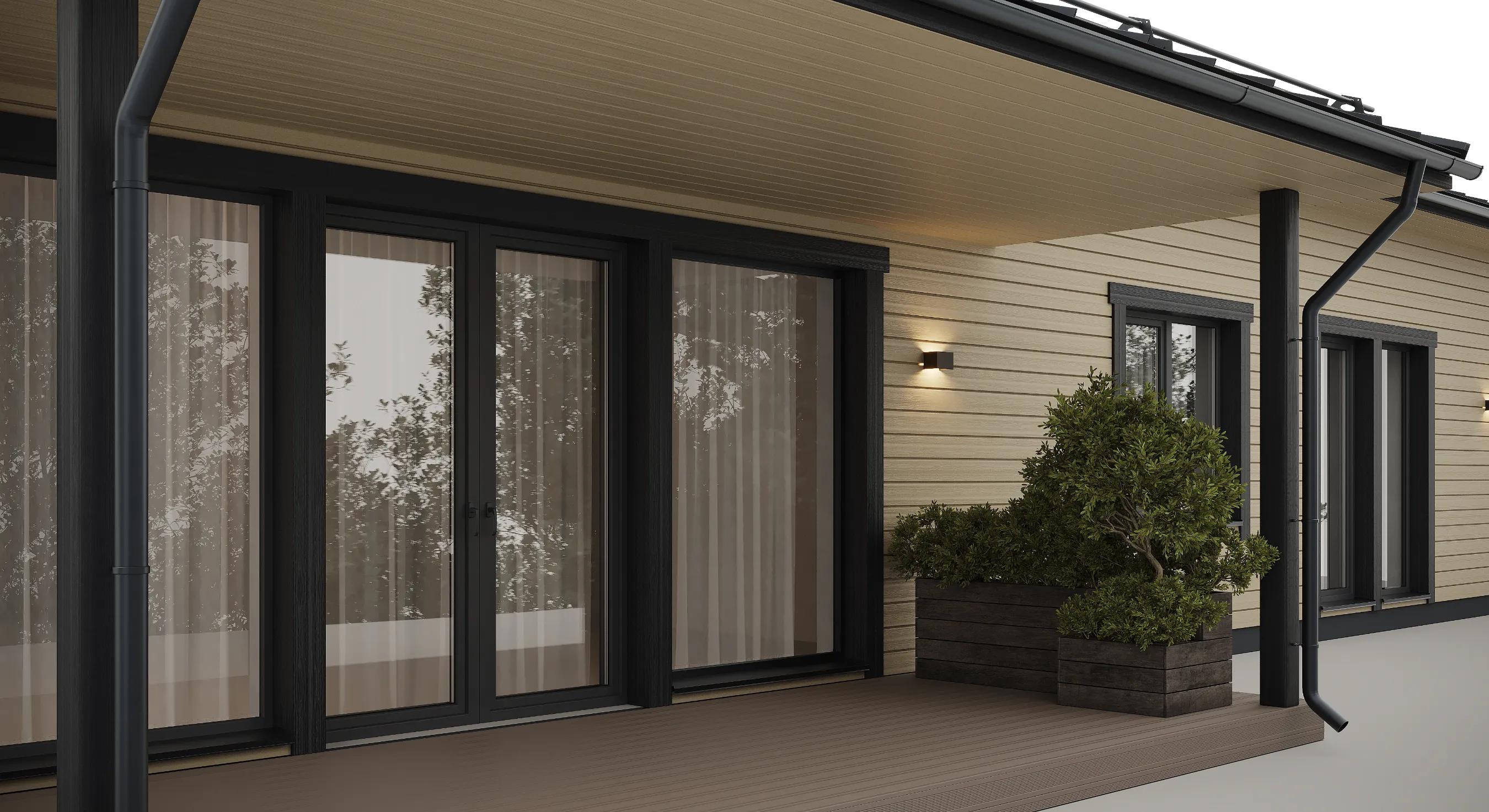 Koka karkasa konstrukcija nozīmē precīzu rūpnīcas sagatavošanu un raitu montāžu objektā, kas palīdz ievērot termiņus un kvalitāti. Papildu ārtelpas zonu var ērti izmantot kā vasaras ēdamistabu vai bērnu rotaļu laukumu, savukārt lielie logi un paaugstinātie griesti nodrošina patīkamu mikroklimatu un mājokļa “plašuma sajūtu”.
