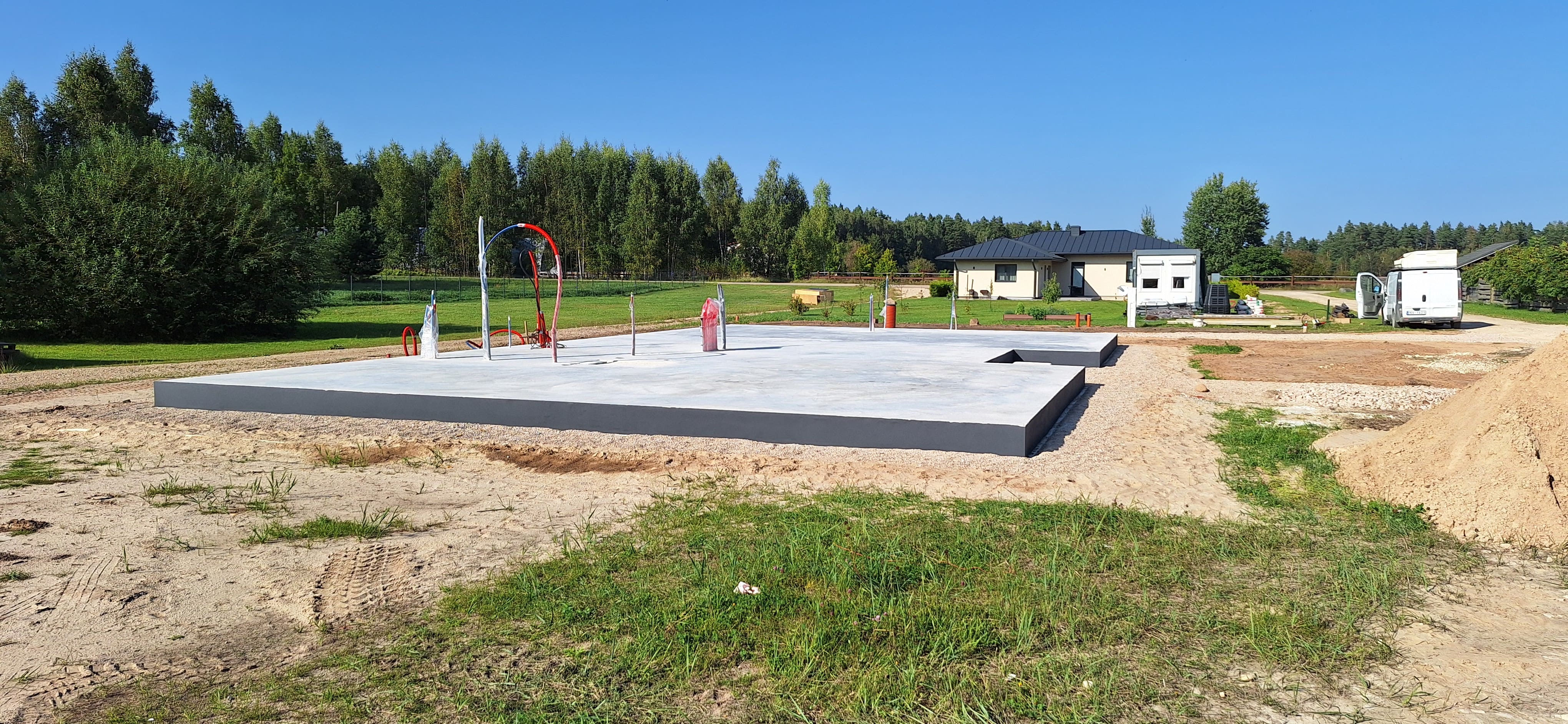 Papildus pamatiem izbūvēta arī bioloģiskās attīrīšanas iekārtas sistēma kanalizācijai, kas, lai darbotos, papildus ir vēl jāveido uz drenējoša smilšu spilvena turpat zemesgabala robežās. Ūdens nāk no iepriekš ieurbtas spices.